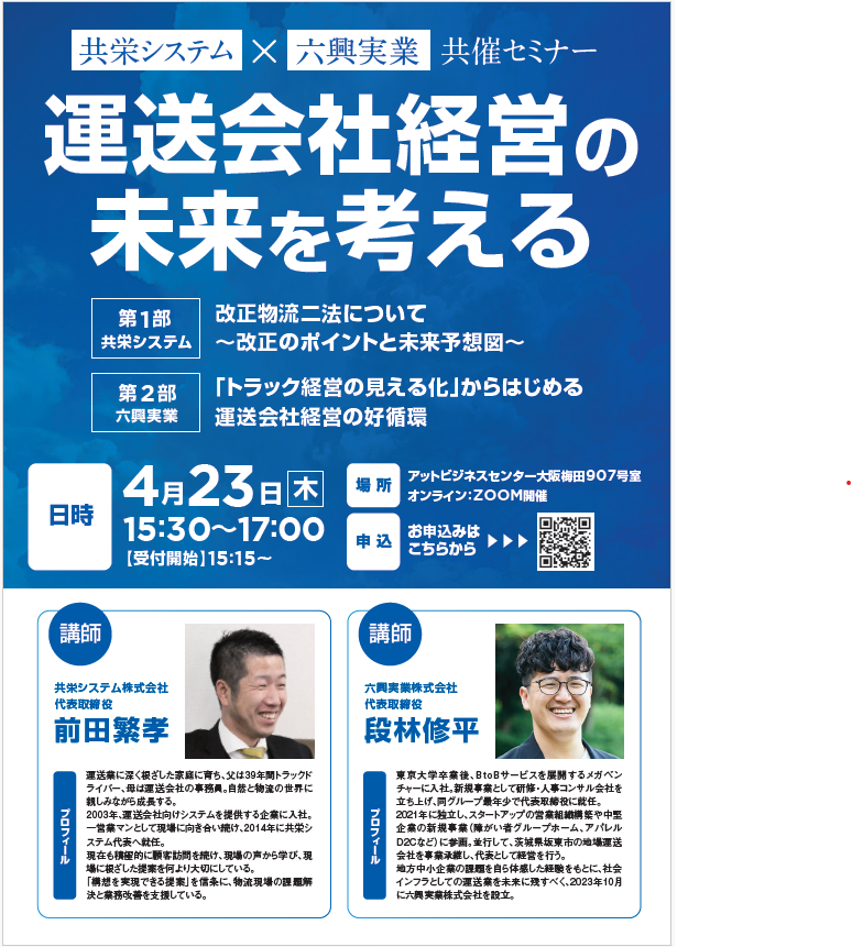 【開催日4月23日(木)】共栄システム株式会社・六興実業株式会社 共催セミナー「運送会社経営の未来を考える」のご案内